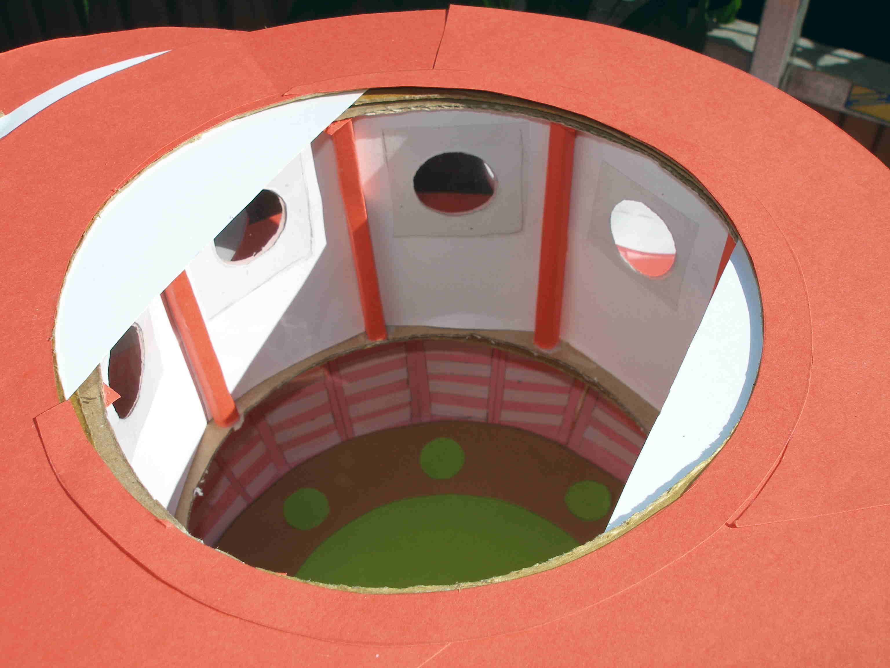 Above the arena is a non-transparent roof with a mobile opening of the same size as the pitch. This roof can be opened or closed according