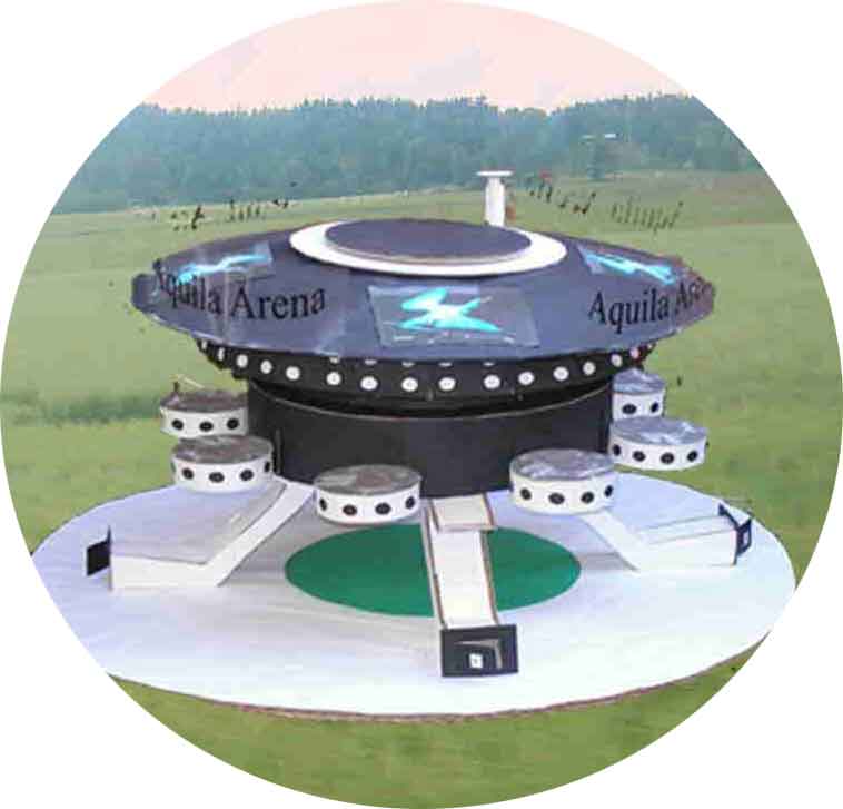 Above the arena is a non-transparent roof with a mobile opening of the same size as the pitch. This roof can be opened or closed according